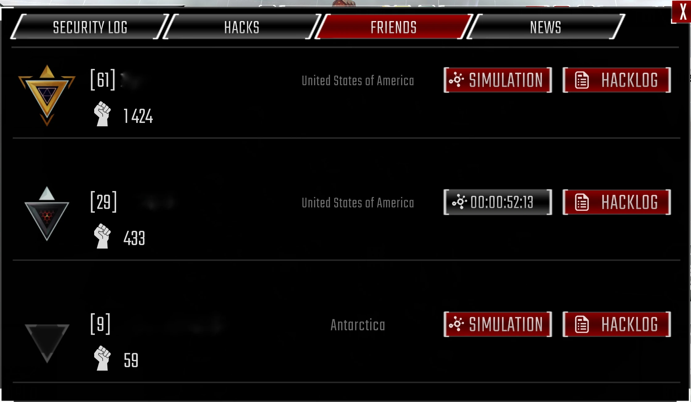 - Anyone connected as a friend through Facebook can simulate a hack, even at much higher or lower levels or ranks